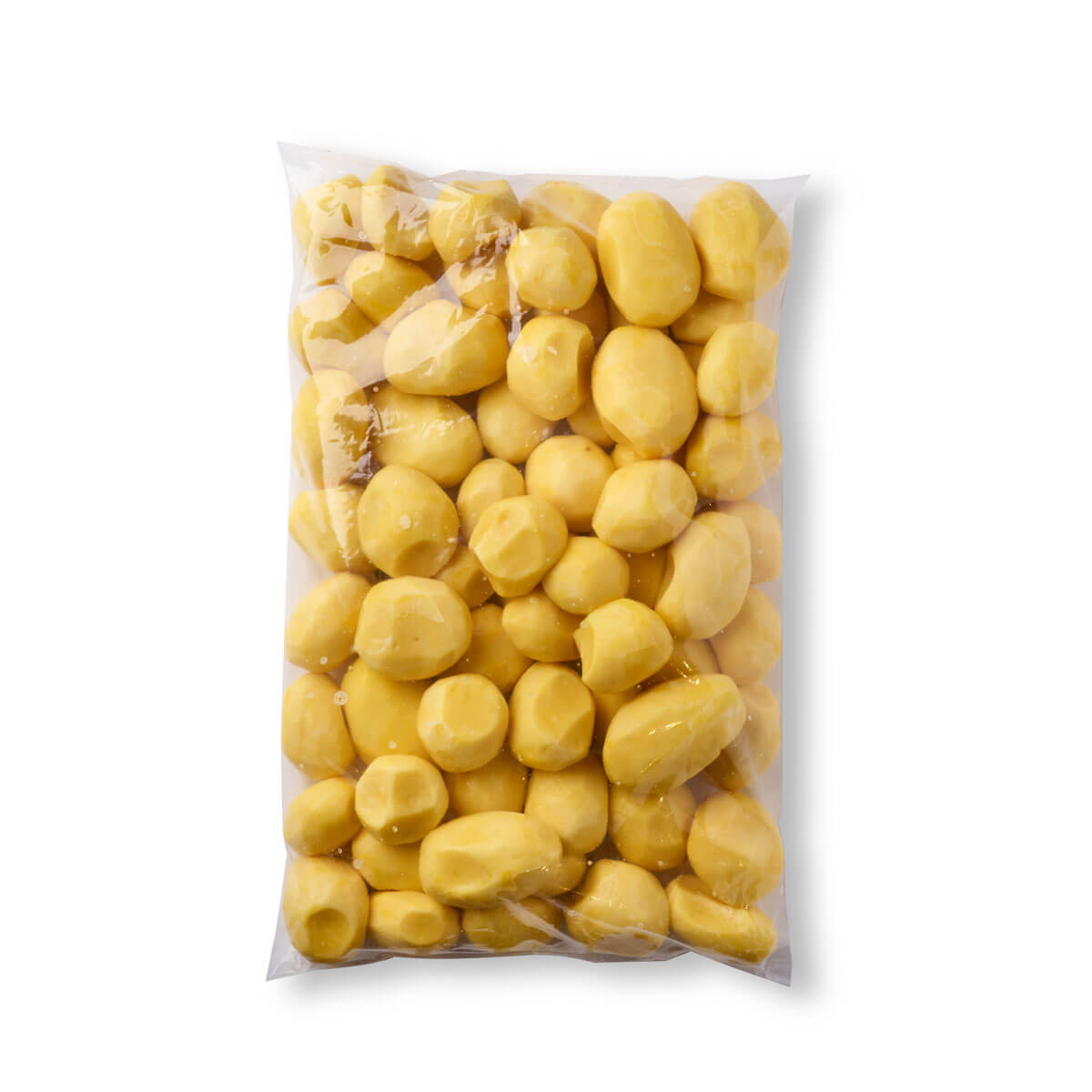 Onze geschilde aardappelen worden met zorg geselecteerd, gewassen en verwerkt binnen 24 uur na levering. Dankzij ons koudschilproces blijft de natuurlijke celstructuur intact, waardoor smaak en textuur volledig behouden blijven.