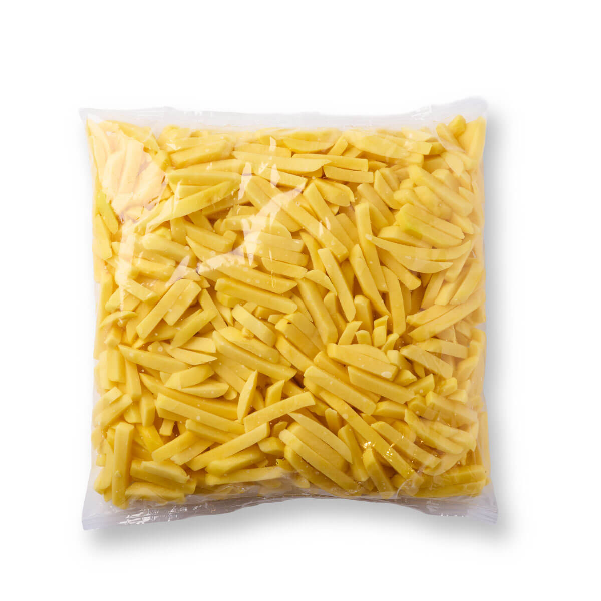 Onze frieten hebben een natuurlijke goudgele kleur en een lichte, krokante beet. Dankzij de verpakking onder beschermde atmosfeer blijft die versheid optimaal bewaard tot in de frituur.