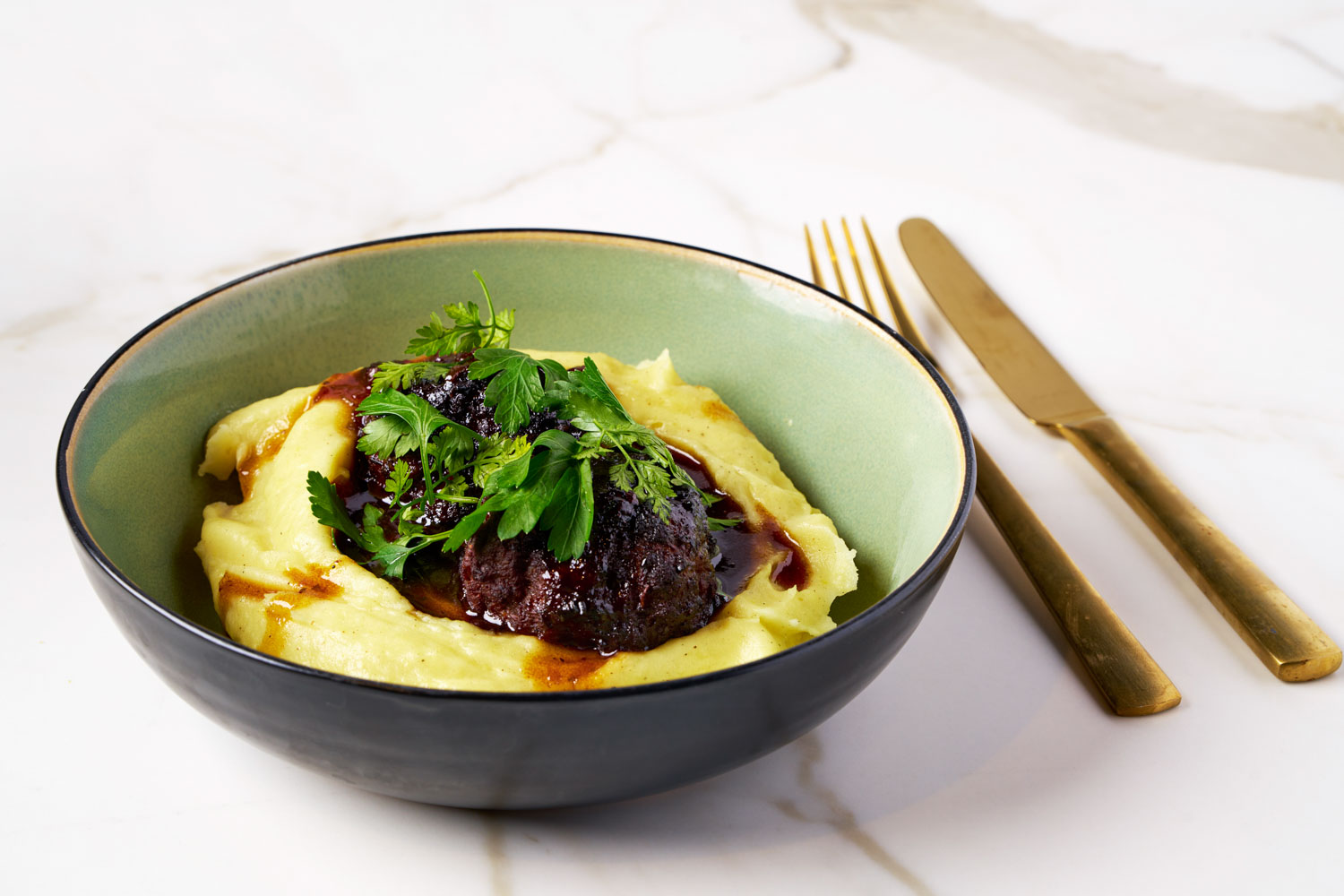 BOULETTES LIÉGEOISES ET PURÉE DE POMMES DE TERRE ONCTUEUSE