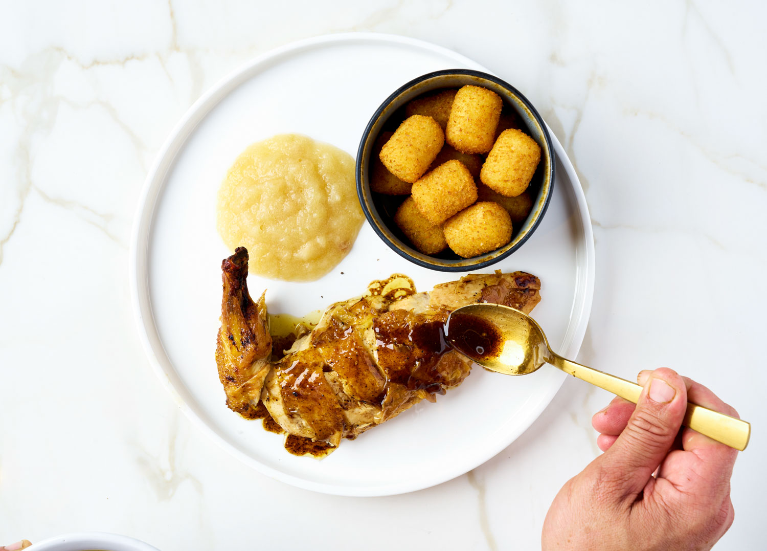 POULET FERMIER DE FLANDRE AVEC CROQUETTES ET COMPOTE DE POMMES