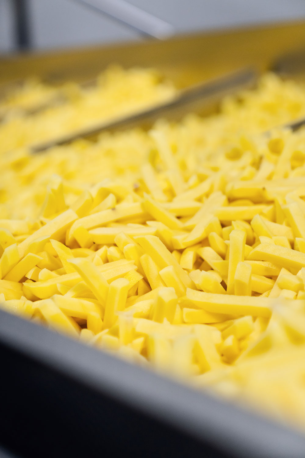 Versheid staat centraal. Binnen 24 uur na het rooien worden de aardappelen verwerkt tot frietjes.